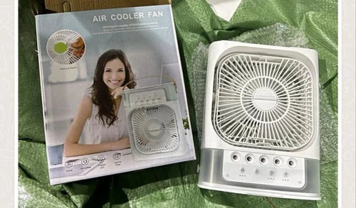 Mini Fan Cooler for Home with 3 Speed Mode with Water Spray, 7 Color LED and Timer, USB Personal Cooler Desk Fan for Shop, Office